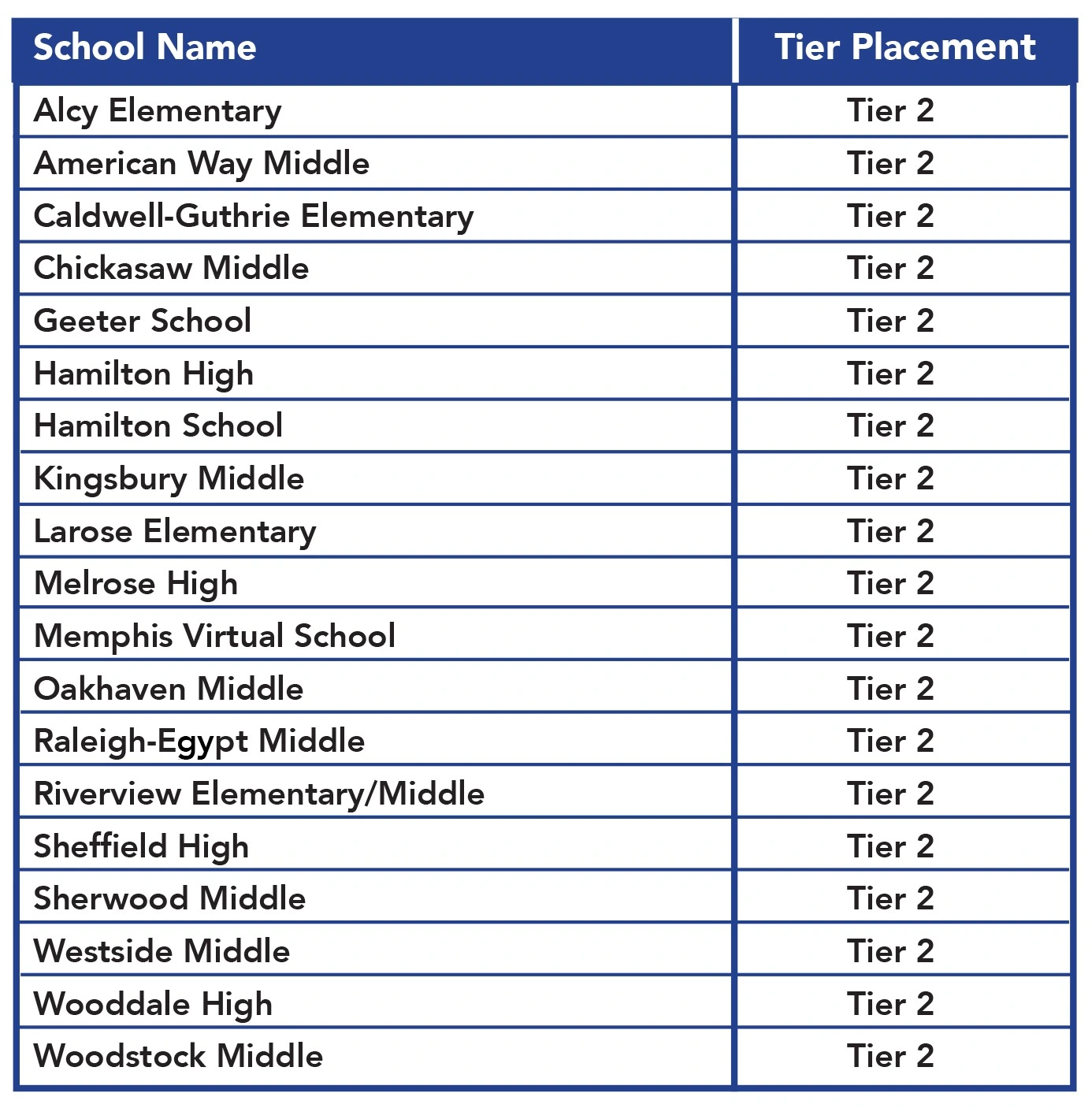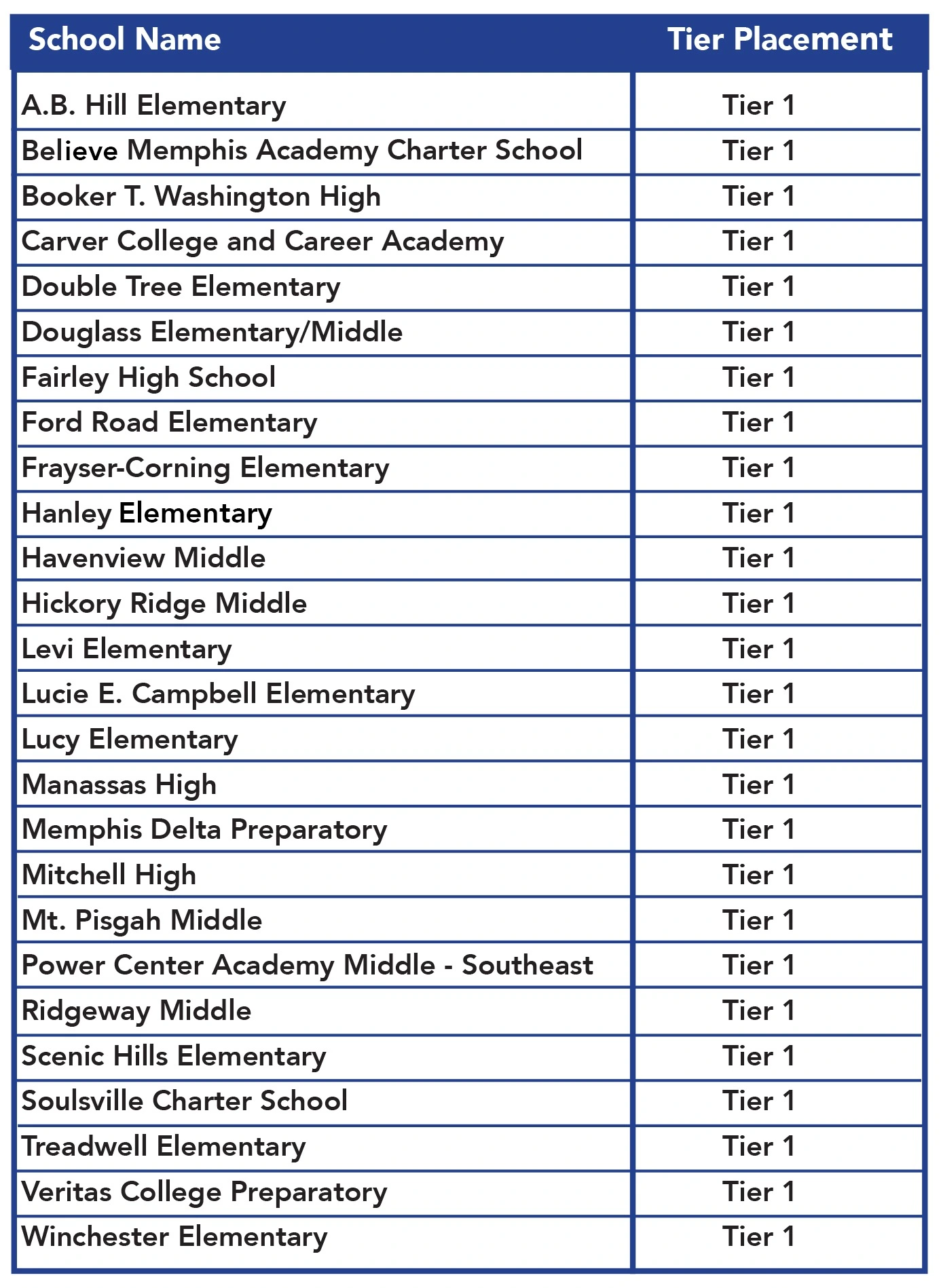 Currently, no Memphis-Shelby County Schools are identified as Tier 3.