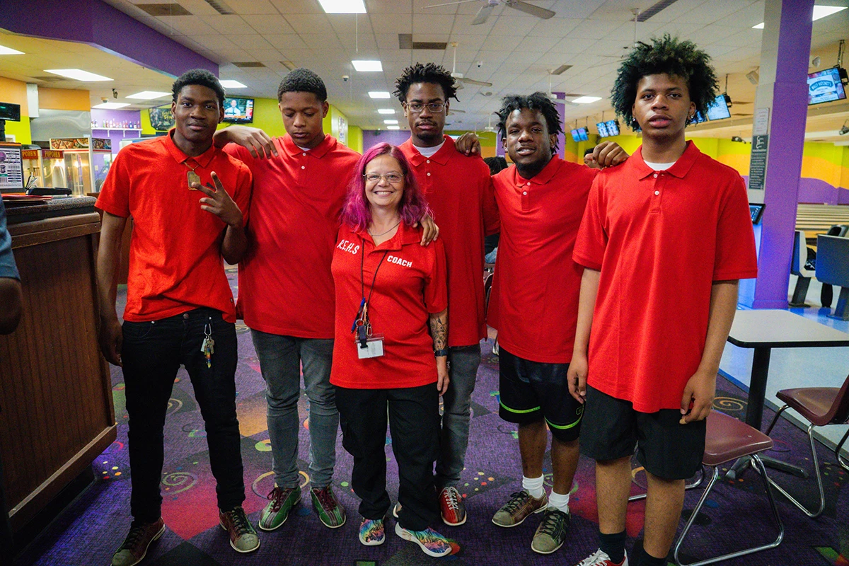 Elizabeth Butner pictured with students from Raleigh-Egypt High School.“I started coaching bowling in 2005 or 06 at Westwood. It’s been forever,” Butner said with a laugh.